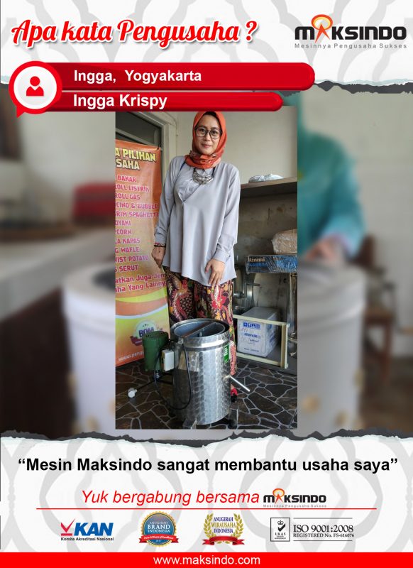 - mesin telah teruji dan dipakai ratusan pengusaha makanan gorengan di berbagai kota di Indonesia dan luar negeri