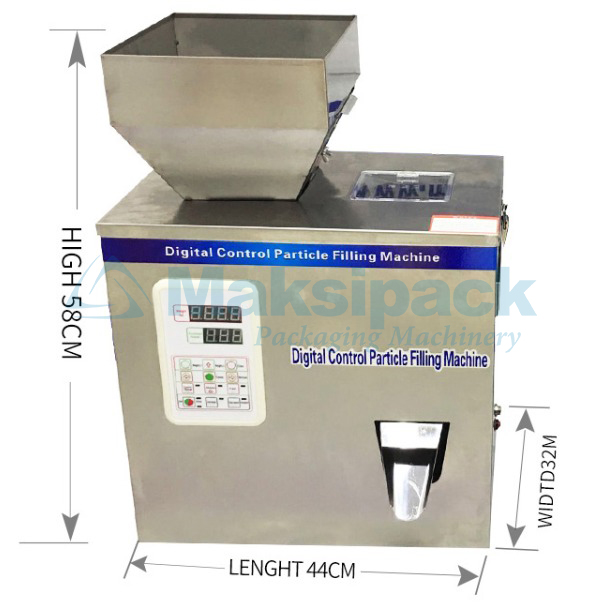 - Rentang Pengisian : 2-100 gr (untuk granule/biji maksimal 200 gr, untuk tepung maksimal 150 gr)