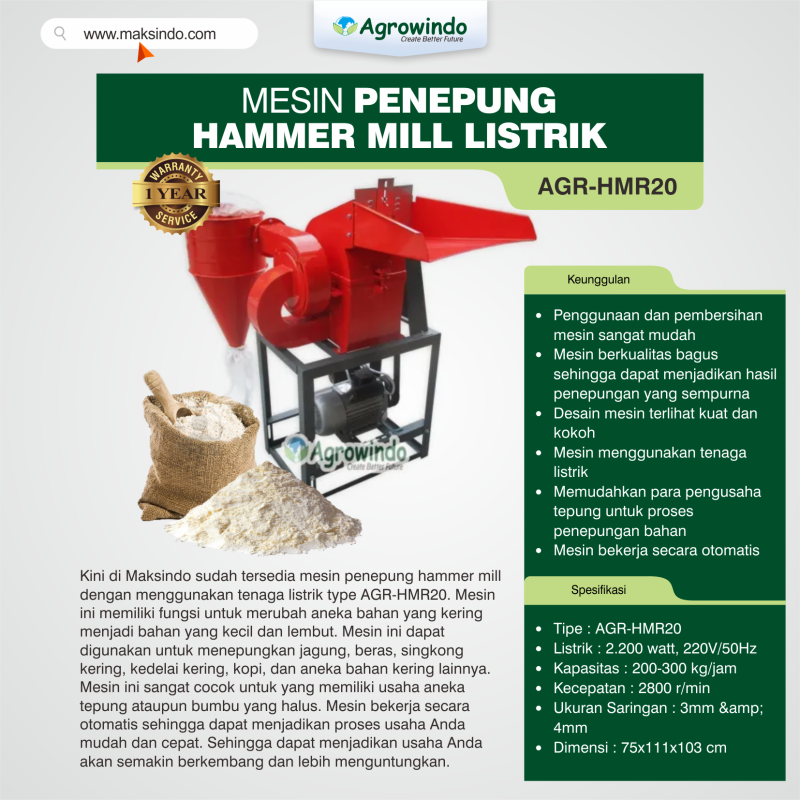 Mesin Penepung Hammer Mill Listrik (AGR-HMR20)