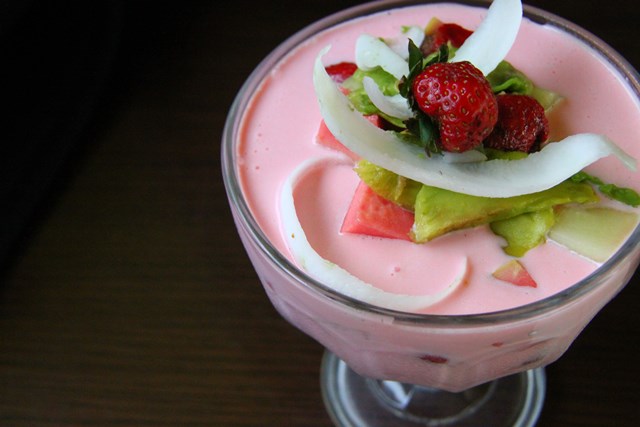 - Bubur Buah : Masukan yogurt, es krim, madu dan strawberry ke dalam blender, blender sampai lembut.