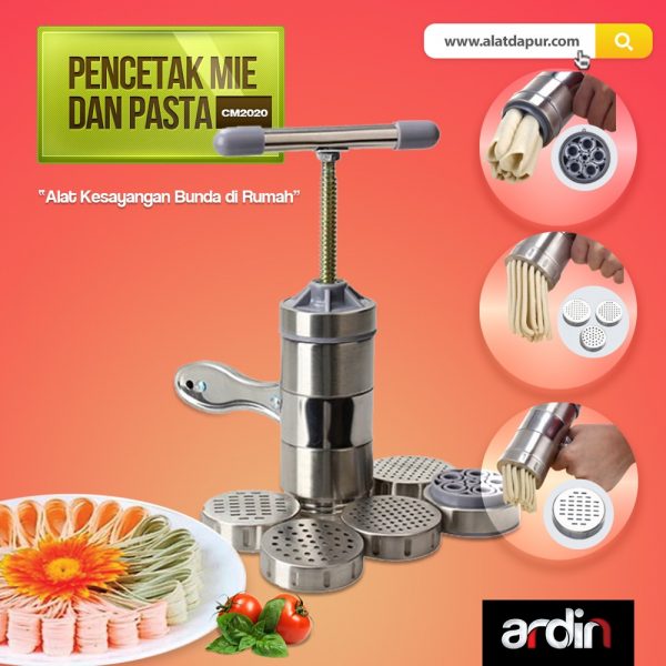 Mencetak Mie atau Pasta menjadi lebih mudah dengan alat pencetak mie dan pasta ardin. Desain yang minimalis membuat pemakaian menjadi mudah, praktis dan menyenangkan. Sangat cocok untuk ibu rumah tangga modern yang sayang keluarga.
