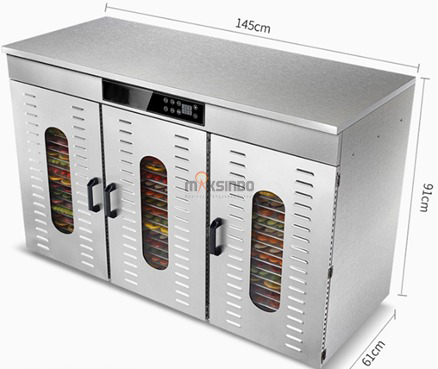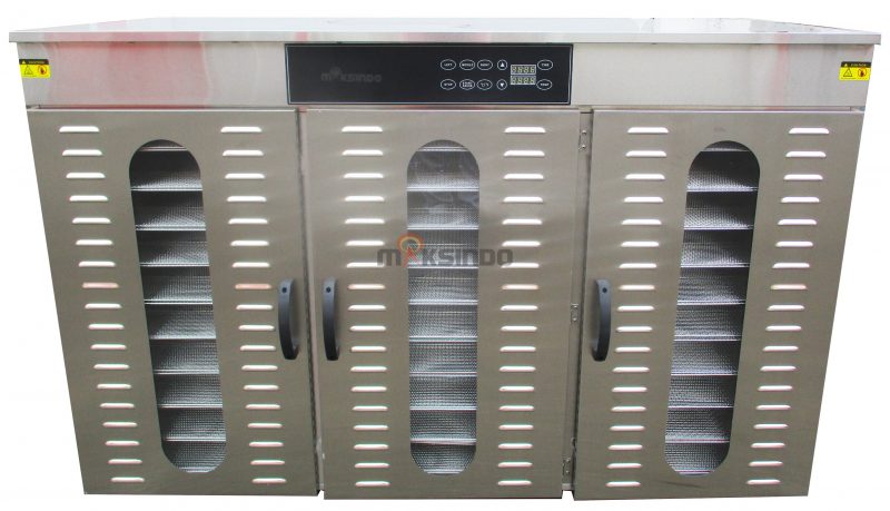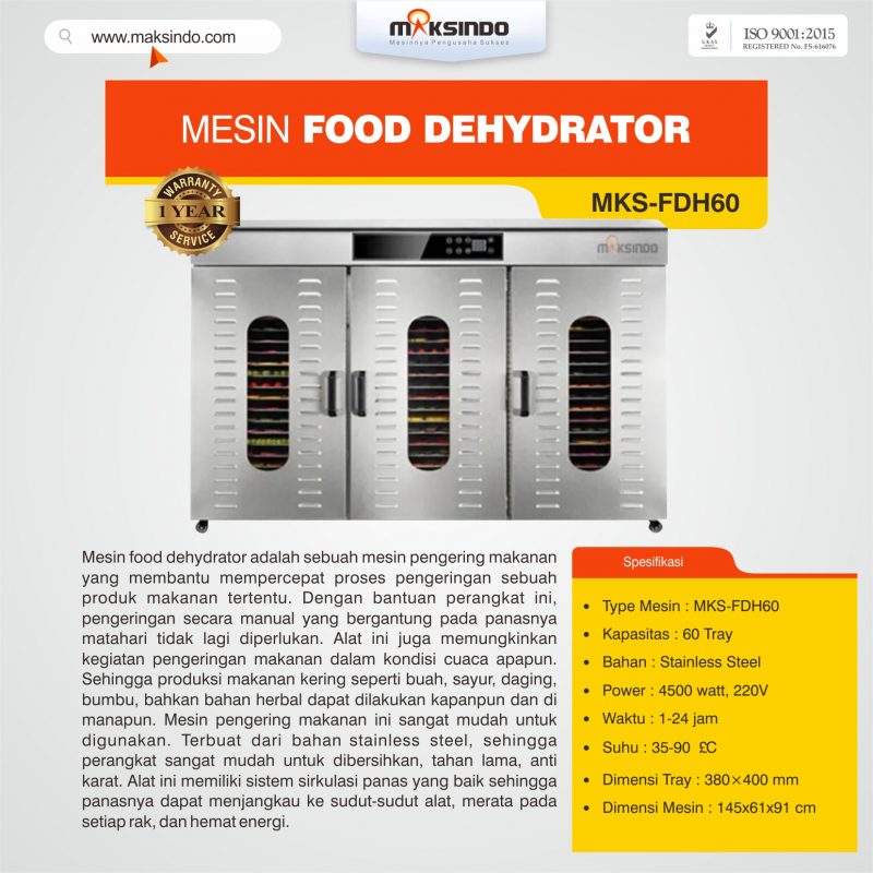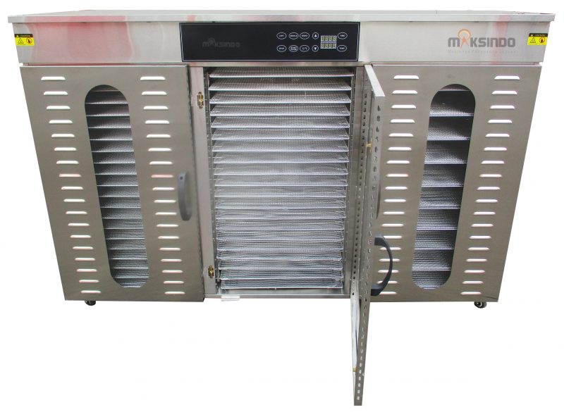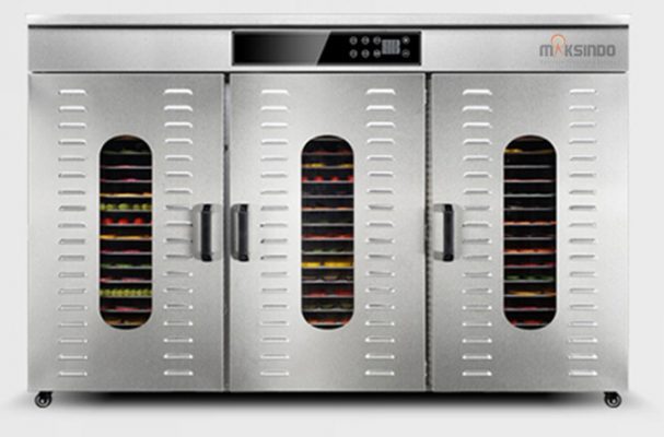 Mesin food dehydrator adalah sebuah mesin pengering makanan yang membantu mempercepat proses pengeringan sebuah produk makanan tertentu. Dengan bantuan perangkat ini, pengeringan secara manual yang bergantung pada panasnya matahari tidak lagi diperlukan. Alat ini juga memungkinkan kegiatan pengeringan makanan dalam kondisi cuaca apapun. Sehingga produksi makanan kering seperti buah, sayur, daging, bumbu, bahkan bahan herbal dapat dilakukan kapanpun dan di manapun. Mesin pengering makanan ini sangat mudah untuk digunakan. Terbuat dari bahan stainless steel, sehingga perangkat sangat mudah untuk dibersihkan, tahan lama, anti karat. Alat ini memiliki sistem sirkulasi panas yang baik sehingga panasnya dapat menjangkau ke sudut-sudut alat, merata pada setiap rak, dan hemat energi.