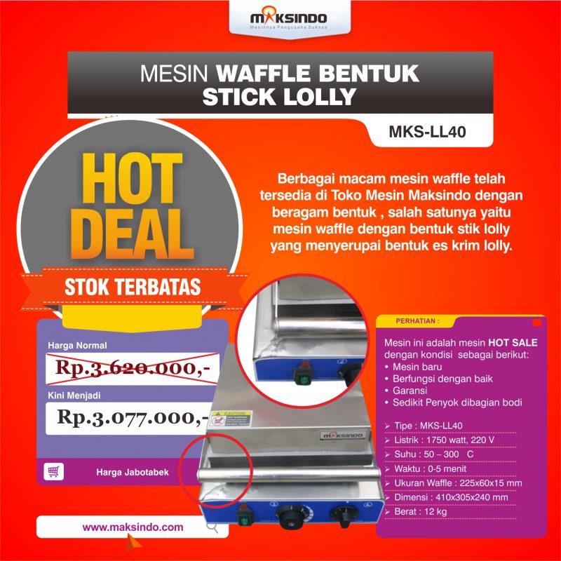 Berbagai macam mesin waffle telah tersedia di Toko Mesin Maksindo dengan beragam bentuk , salah satunya yaitu mesin waffle dengan bentuk stik lolly yang menyerupai bentuk es krim lolly .