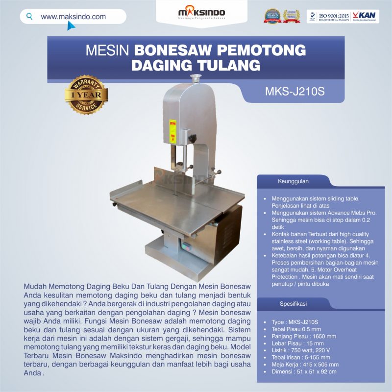 Spesifikasi Mesin Bone Saw MaksindoType : MKS-J210S