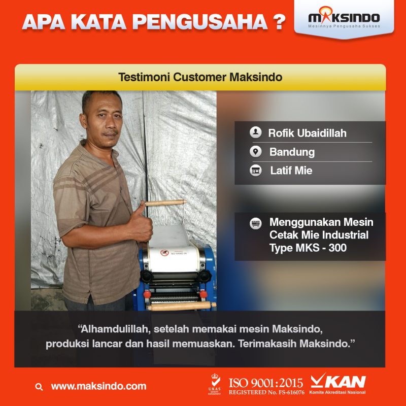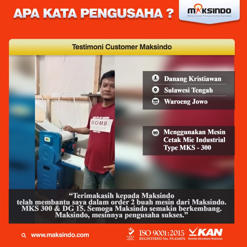 Mie adalah makanan yang disukai semua kalangan, mulai dari anak-anak hingga orang dewasa. Maka dari itu jika Anda ingin memulai sebuah usaha membuat mie dengan kemasan yang cantik, higienis dan berkualitas? Kini di Toko Maksindo sudah menyediakan Mesin Cetak Mie Industrial (MKS-300). Mesin ini termasuk teknologi dengan mesin yang modern yang berfungsi untuk memudahkan membuat suatu makanan. Mesin ini mempunyai kapasitas yang besar dan berkualitas, sehingga dapat memudahkan dan mengembangkan usaha Anda.