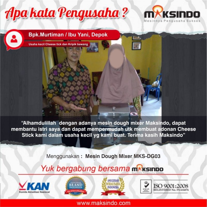 Telah hadir di Maksindo mesin pengaduk adonan serbaguna untuk berbagai adonan tepung, yaitu mesin dough mixerdengan type MKS-DG03. Aplikasi mesin dough mixer mini ini adalah untuk membuat adonan : roti, kue, mie, kulit pastel, adonan cheese stick, adonan kerupuk, kulit pangsit, dll.