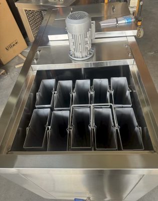Menggunakan sistem sirkulasi refrigerasi modern, membuat es balok lebih cepat terbentuk dan lebih padat.