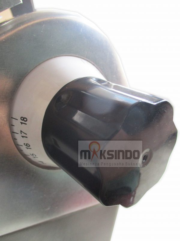 Mesin meat slicer Maksindo berfungsi untuk mengiris daging beku, keju dan bahan lainnya yang sejenis.