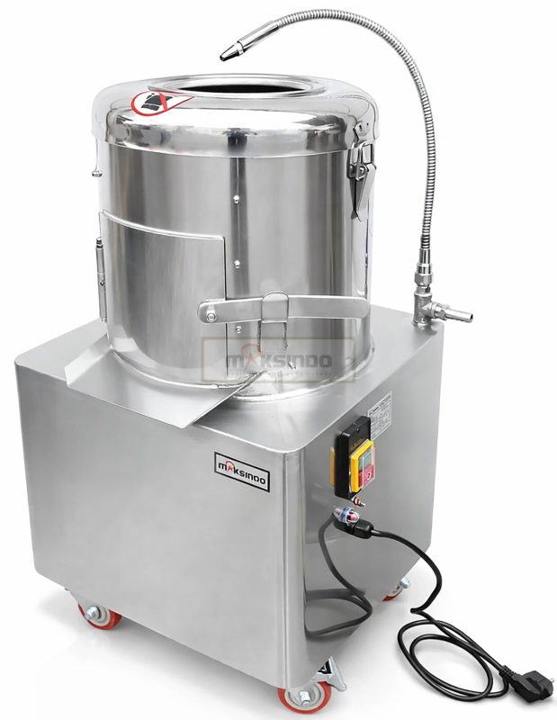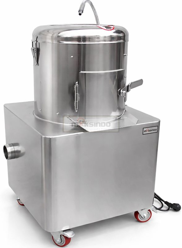 Mesin Kupas Kentang Potato Peeler adalah alat yang digunakan untuk mengupas kulit kentang secara otomatis. mesin ini akan membantu Anda untuk mengupas kentang dengan lebih mudah, aman dan higienis. Mesin Kupas Kentang Potato Peeler banyak digunakan oleh pengusaha makanan seperti catering, restoran dan hotel. Cara kerjanya adalah mengupas kentang dengan cara diputar. Mesin Kupas Kentang Potato Peeler ini memiliki alas pemutar dan dinding dengan sistem pengupas berupa tonjolan kecil. Tonjolan kecil ini memiliki fungsi seperti amplas yang akan membuat kulit kentang terkupas secara otomatis dengan mudahnya. Di dalam mesin ini terdapat mesin pengalir air yang berfungsi untuk membersihkan dan menghindarkan kentang yang sudah di kupas dari kotoran. Hasil kupasan pun akan menjadi lebih bersih dan higienis. Mesin Kupas Kentang Potato Peeler terbuat dari bahan stainless steel yang anti karat dan mudah dibersihkan sehingga tidak akan ada sisa-sisa kotoran yang menempel pada mesin. Dua jenis pintu pengeluaran yang tersedia akan membuat Anda lebih mudah memisahkan jenis limbah yang akan dibuang. Mesin ini juga dapat digunakan untuk memenuhi kebutuhan mengupas kentang rumah tangga. Anda dapat membuat snack kentang sendiri dengan menggunakan Mesin Kupas Kentang Potato Peeler.