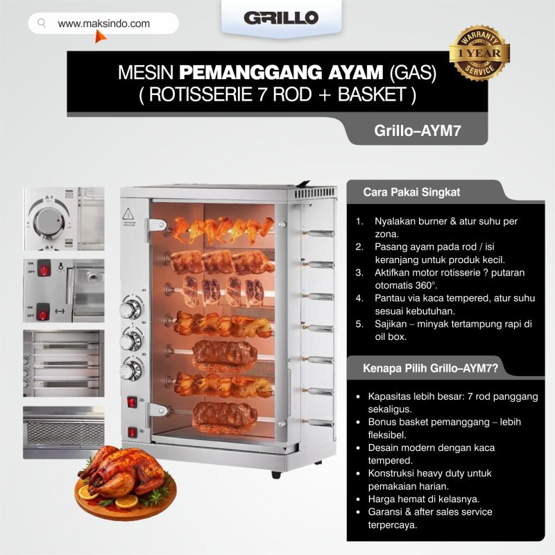 Tipe: Grillo–AYM7 (Gas Chicken Rotisserie)