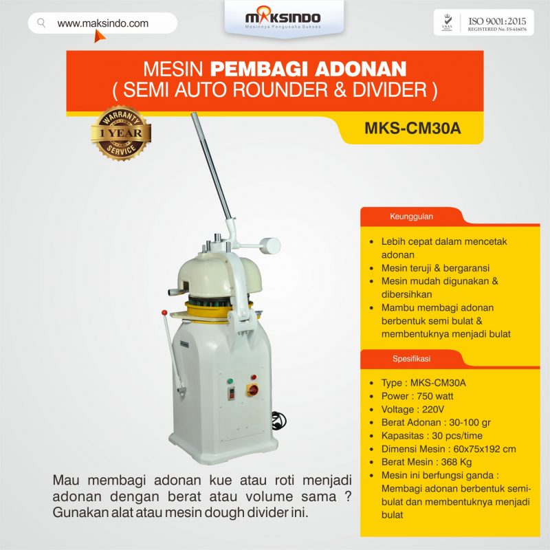 - Mesin ini berfungsi ganda : Membagi adonan berbentuk semi-bulat dan membentuknya menjadi bulat