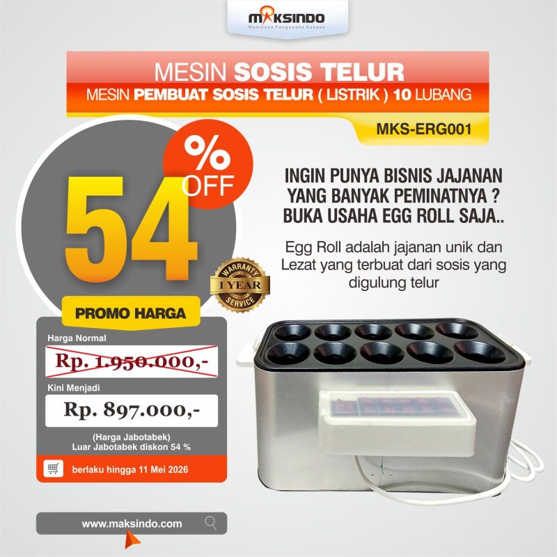 PERHATIAN: hati-Hati penipuan dengan berpura-pura menjual mesin egg roll (sosis telur) Maksindo dengan harga lebih murah. Itu adalah penipuan atau barang palsu. BELI HANYA MESIN SOSIS TELUR MAKSINDO di akun resmi maksindo, reseller, atau di toko maksindo terdekat dari kota Anda. Sehingga Anda bisa mendapatkan mesin asli, berkualitas, bergaransi, dan usaha menjadi lancar