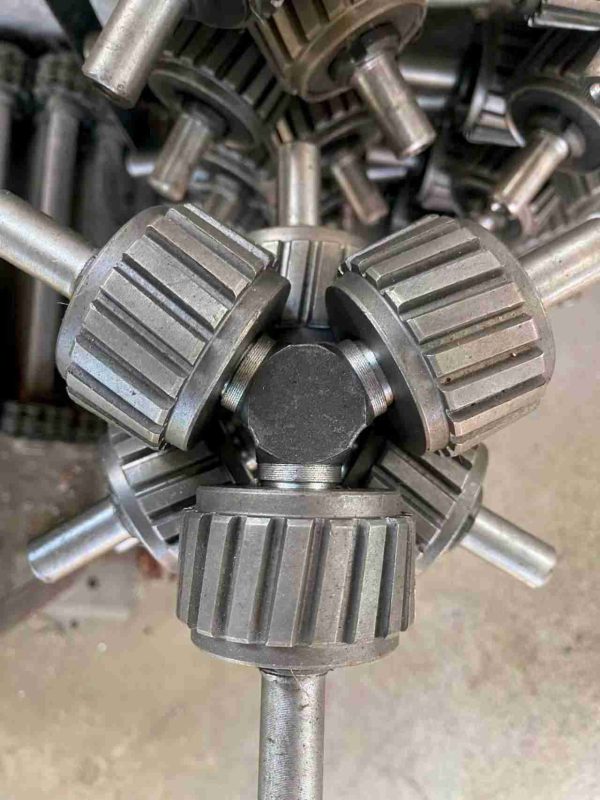 Bahan ditekan oleh 3 buah roller presisi tinggi yang berputar di atas plat die berlubang