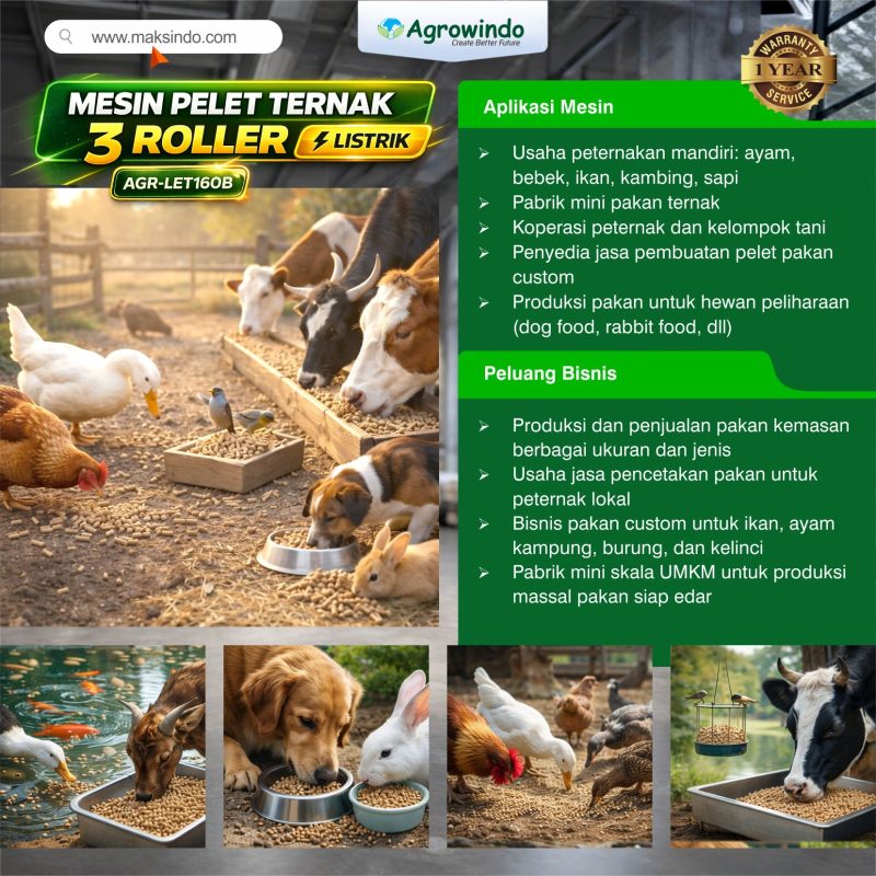 Gunakan Mesin Pelet AGR-LET160B dari Agrowindo – Konsultasikan kebutuhan Anda dan dapatkan mesin berkualitas tinggi untuk produksi pakan sendiri di rumah atau usaha Anda.