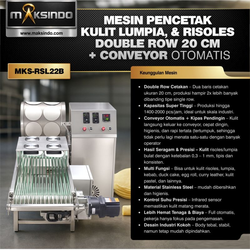 Mesin Pencetak Kulit Lumpia, dan Risoles (MKS-RSL22B) – Double Row 20 cm + Conveyor Otomatis