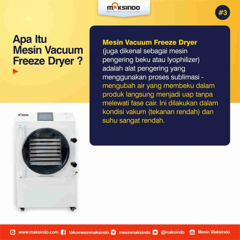 Mesin pengering beku vakum, atau yang lebih dikenal sebagai vacuum freeze dryer, merupakan alat penting dalam industri pengolahan makanan, farmasi, dan bioteknologi. Salah satu produk unggulan di Indonesia adalah MKS-VFD4 dari Maksindo. Mesin ini dirancang untuk mengeringkan bahan dengan cara menghilangkan kelembapan melalui proses sublimasi, sehingga menjaga kualitas, aroma, dan nutrisi bahan yang diolah. MKS-VFD4 adalah mesin pengering beku vakum yang dilengkapi dengan teknologi mutakhir untuk memastikan proses pengeringan berjalan efektif dan efisien. Mesin ini Dapat mengolah berbagai jenis produk dengan kapasitas 4-6 kg per proses, menjadikannya ideal untuk usaha skala kecil hingga menengah.