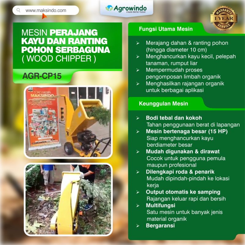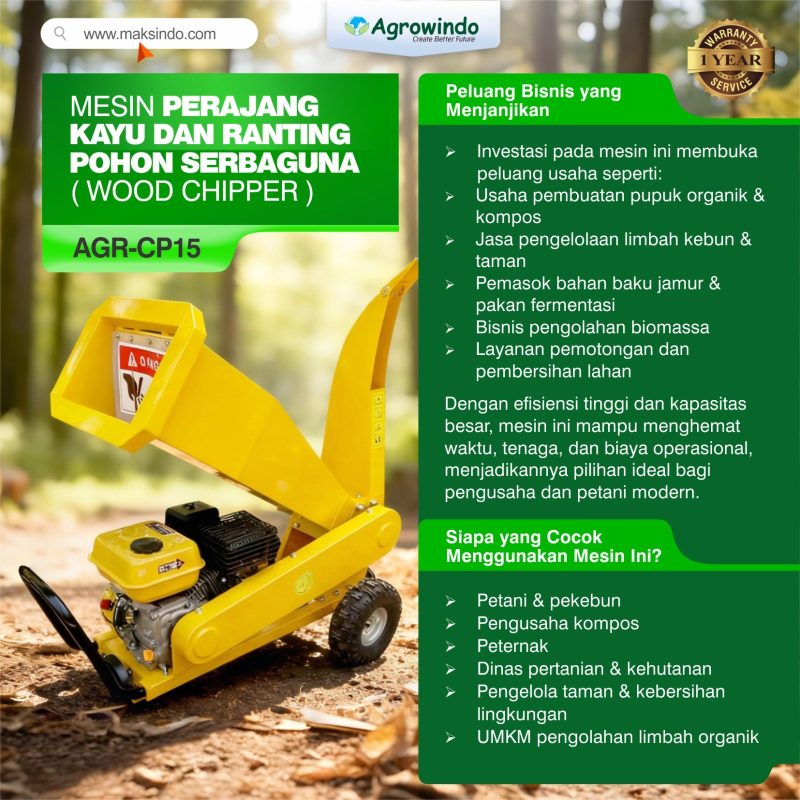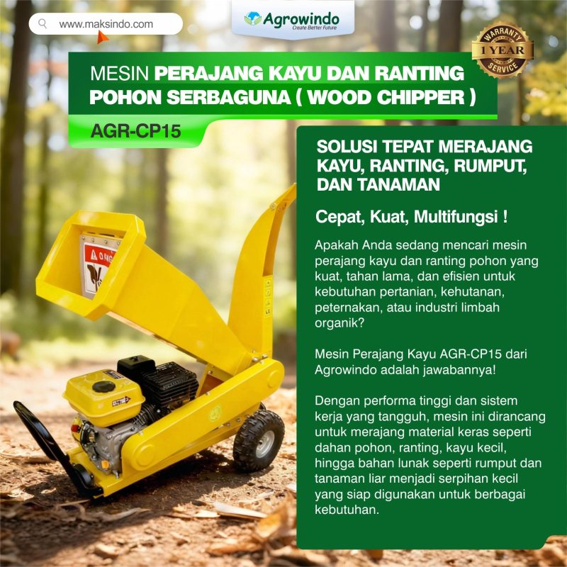 Mesin Perajang Kayu Ranting Pohon, Tanaman, Rumput, dll (Mesin Wood Chipper) – AGR-CP15