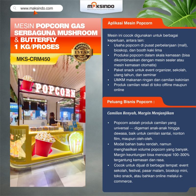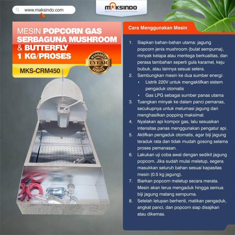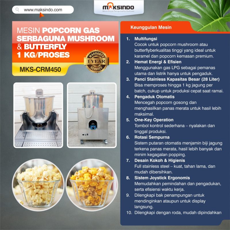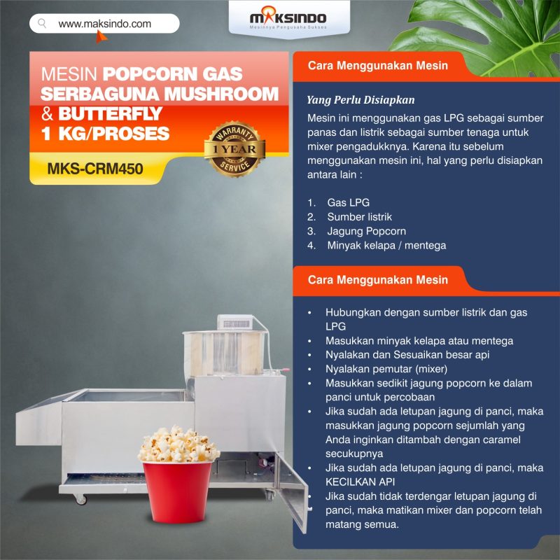 Maksindo menyediakan aneka mesin popcorn. Dan salah satu mesin terbaru kami adalah mesin popcorn gas model MKS-CRM450. Yuk simak info mesin ini di bawah ini :