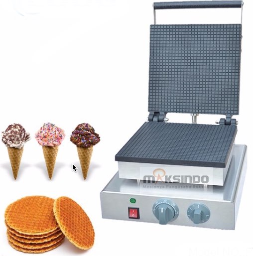 Fungsi mesin : untuk membuat wadah es krim bentuk cone (kerucut) dan bowl (mangkuk). Juga bisa untuk membuat kue/camilan sejenis kue kering (lihat gambar)