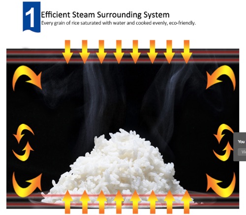 1. Efficient steam cycling system, makes every grain of rice saturated with water and cooked evenly, eco-friendly.
