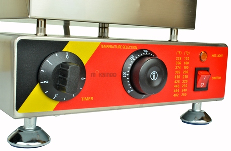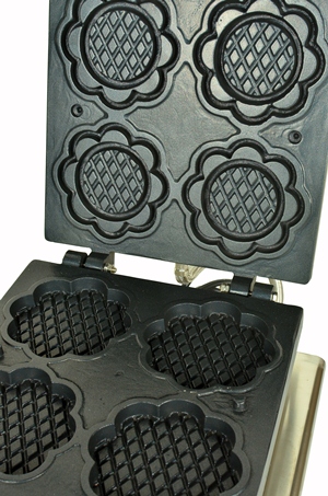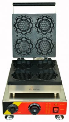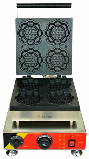 Maksindo menjual mesin pembuat kue waffle. Kue dengan rasa khas nikmat ini bisa dengan mudah dibuat dengan mesin waffle ini. Mesin dirancang dengan cetakan berbentuk bunga yang membuat kue waffle lebih menarik.